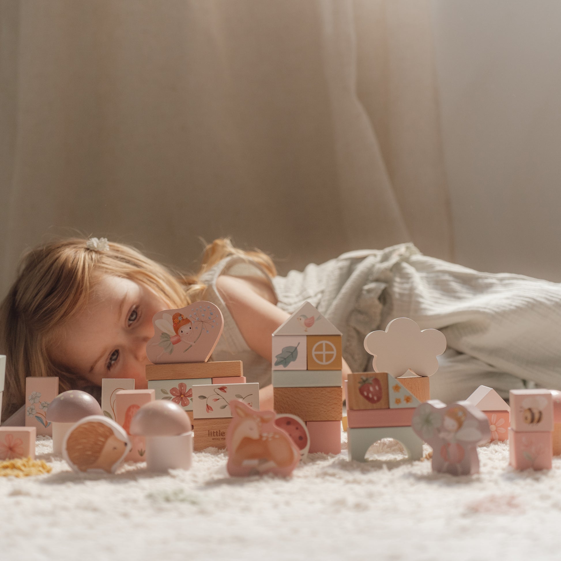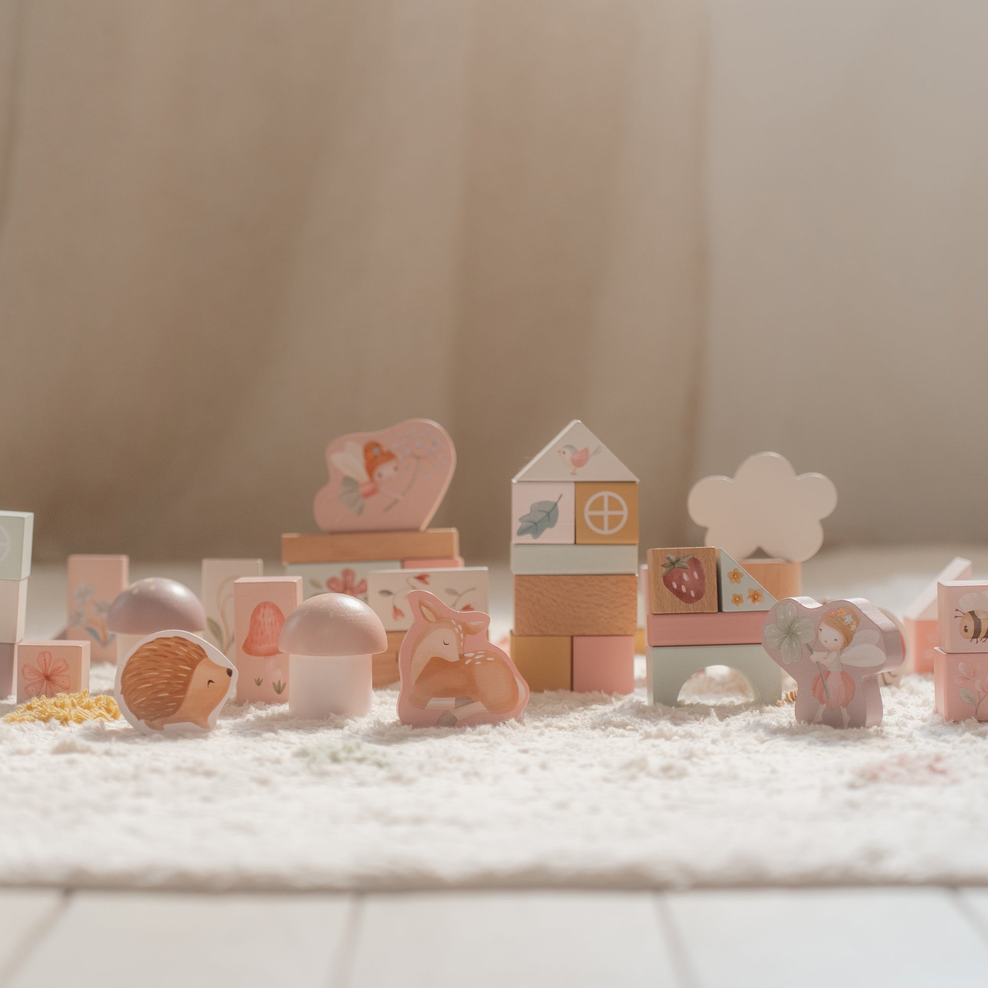 Create a world of wonder with this enchanting wooden block set! Featuring 50 beautifully crafted pieces, little builders can stack, balance, and design their own fairy-tale garden or charming village filled with flowers, leaves, and playful insects. Perfect for sparking creativity and storytelling, this set also helps develop hand-eye coordination and fine motor skills. When playtime is over, simply store the blocks in the matching barrel for easy cleanup and organisation.