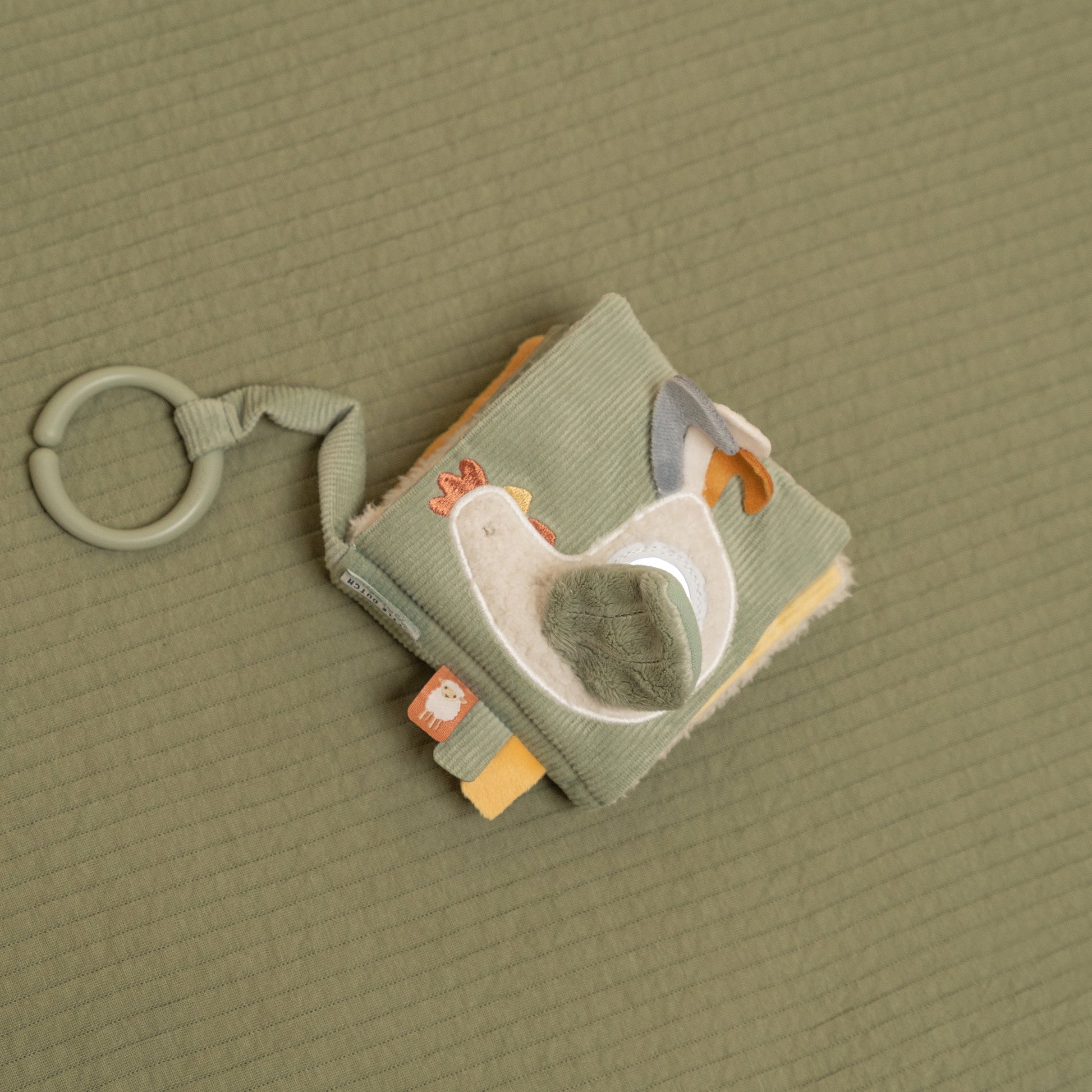 Babies never get bored with this colorful activity book from Little Farm in the shape of a  barn. There is a lot to discover with the different materials and activities, such as a mirror, rattle and hidden toys. The soft book also has various labels to feel, which not only  stimulates the senses but also supports the development of hand-eye coordination.