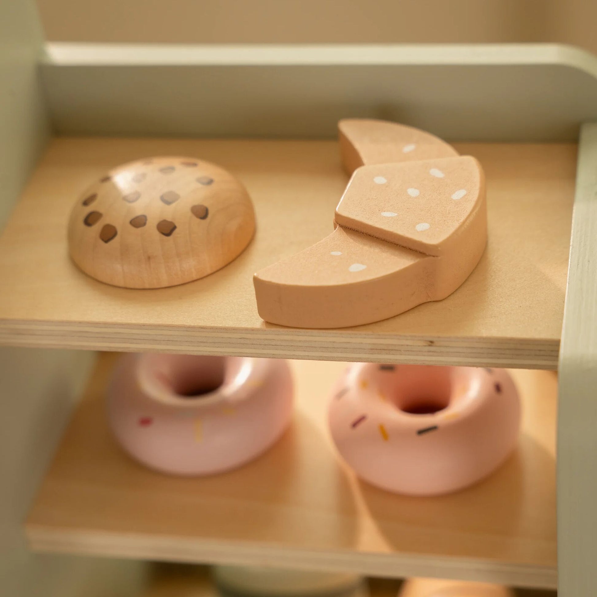 Ample Storage & Display: Includes shelves for cups and a display cabinet for sandwiches and pastries, encouraging organizational play and “menu” presentation.