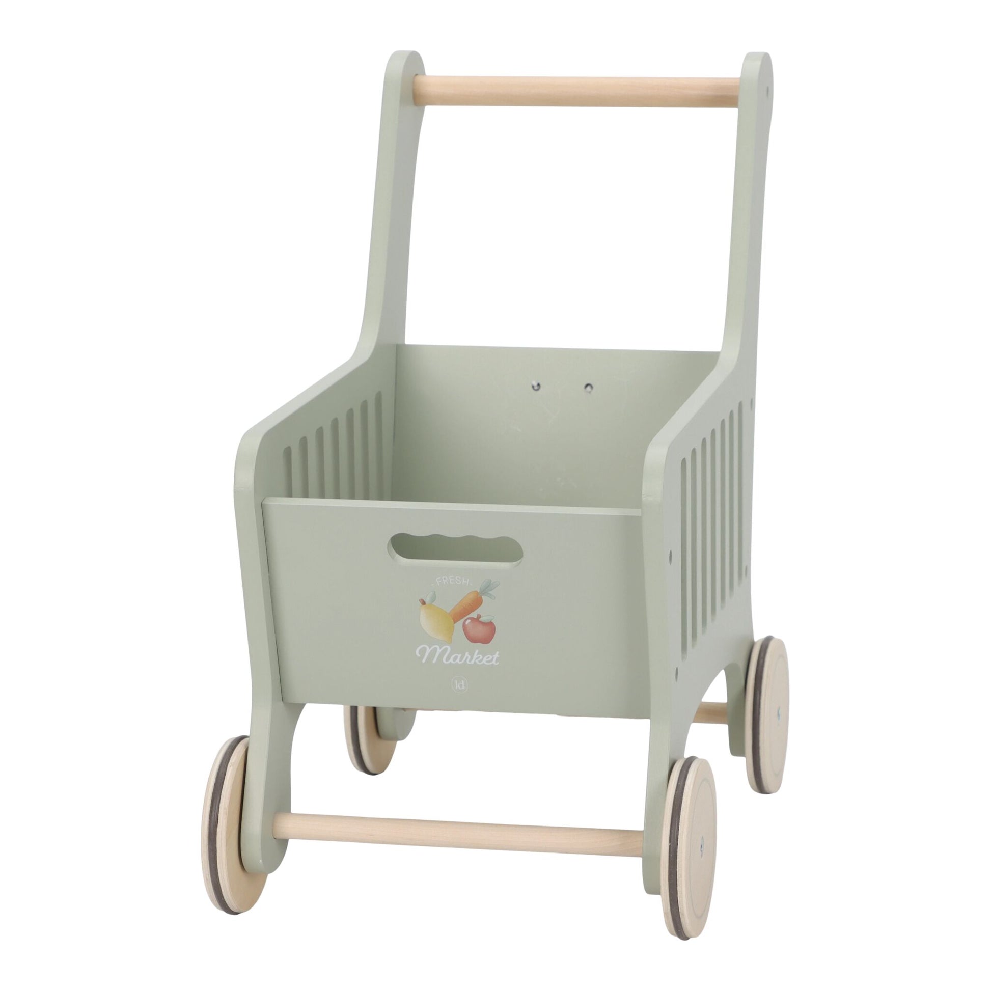 Shopping becomes an adventure! With this wooden play shopping cart, you can get everything you need. Thanks to the spacious storage area, all your groceries fit inside, even if your list is long. The wooden clip keeps your shopping list securely in place, so you don’t forget anything. The set includes various grocery items and a shopping bag, so you can start playing right away. The cart is decorated with a fun illustration on the front, making playtime even more enjoyable. Want the ultimate shopping experience? Combine the cart with the market stall and enjoy endless shopping fun!